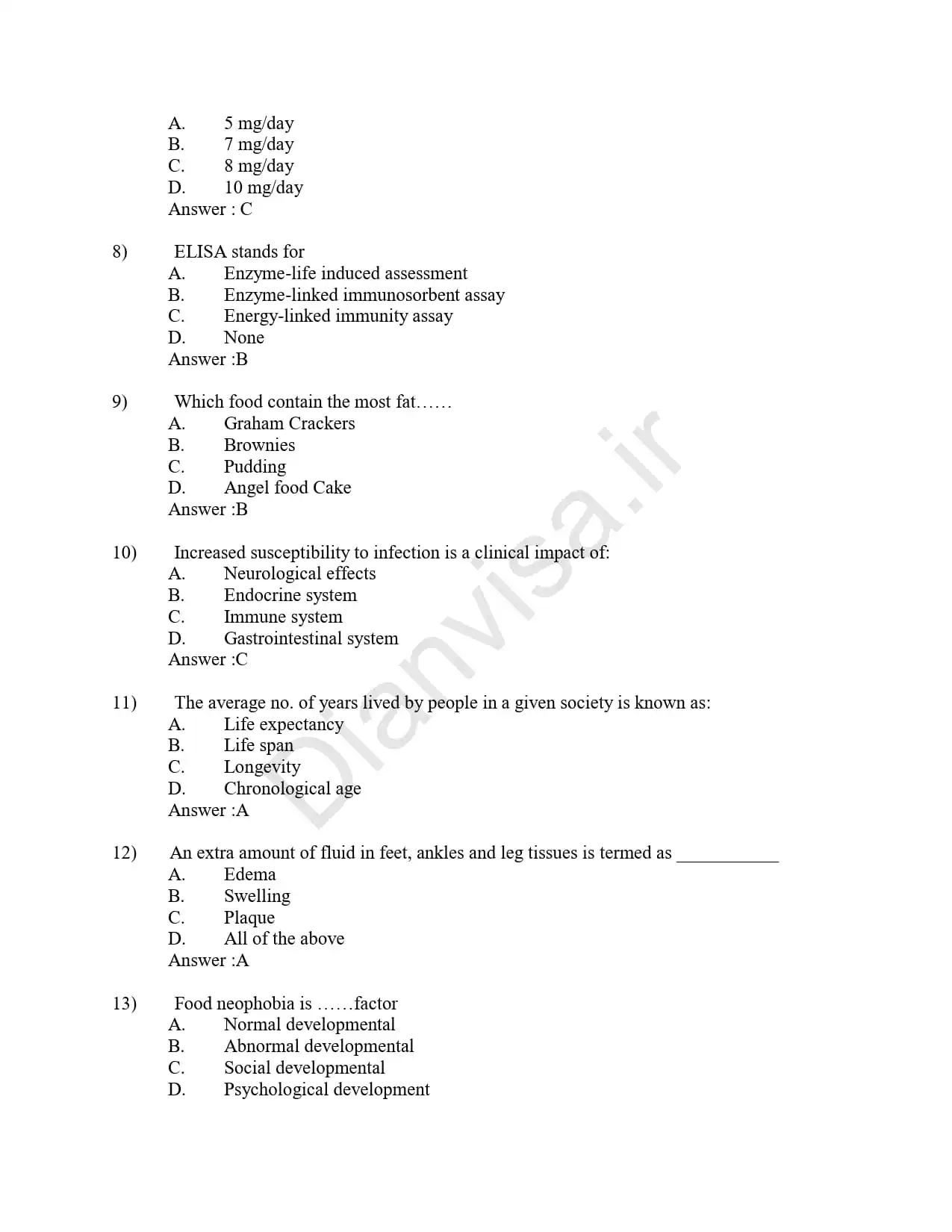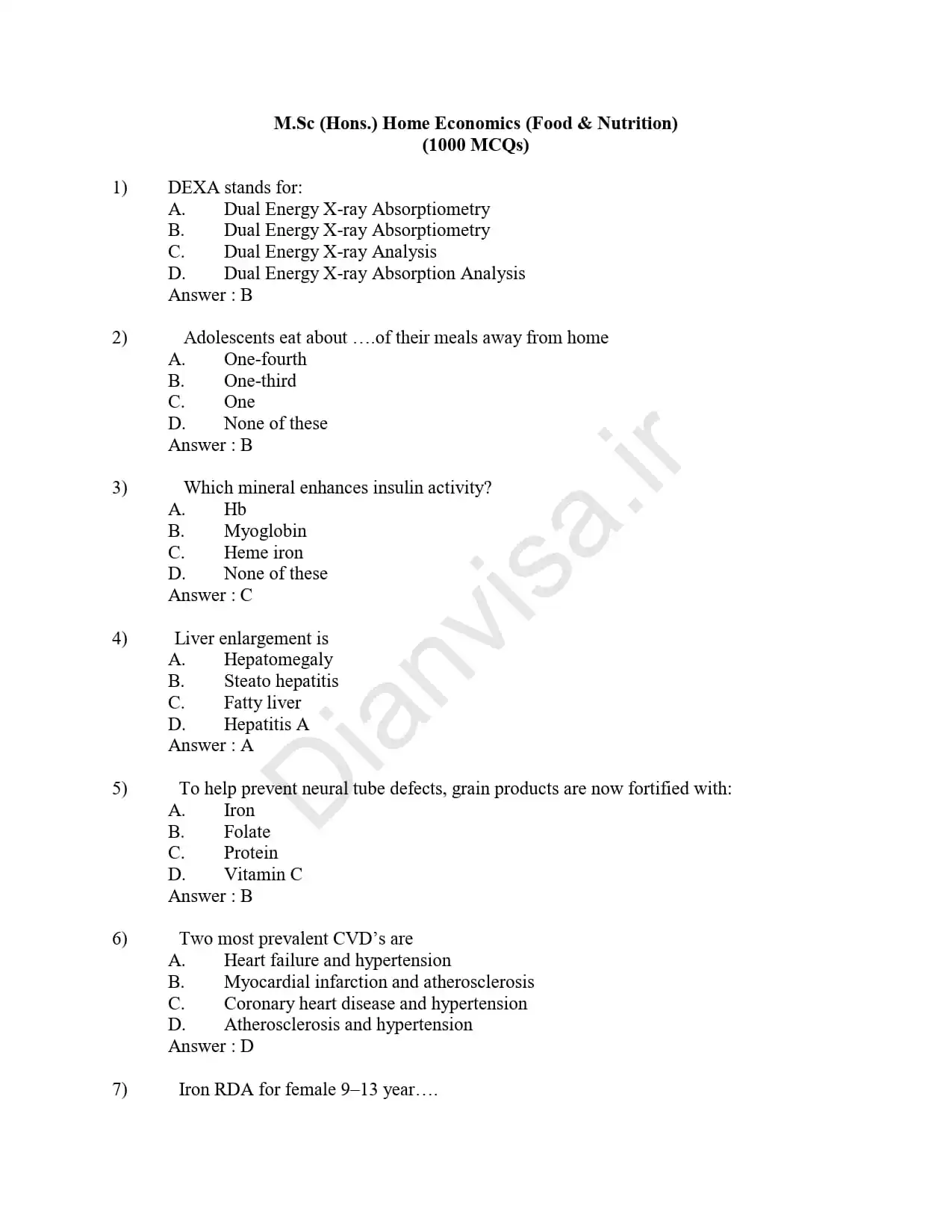 این بانک سوال بخش‌های متنوعی از علم تغذیه را در بر می‌گیرد، از جمله: