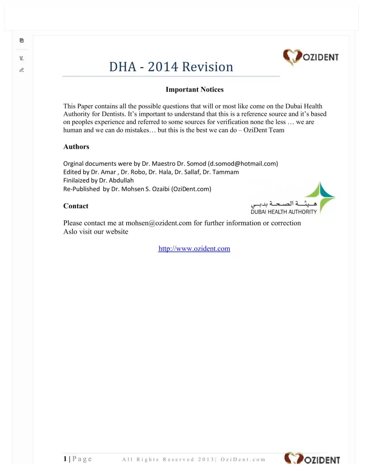 - عنوان: DHA Revision – MCQ Bank for Dentistry